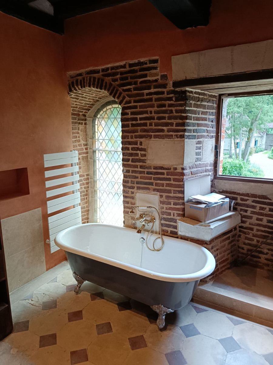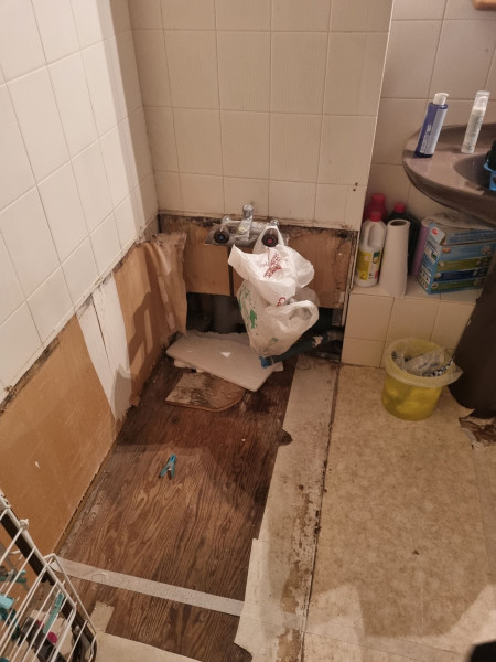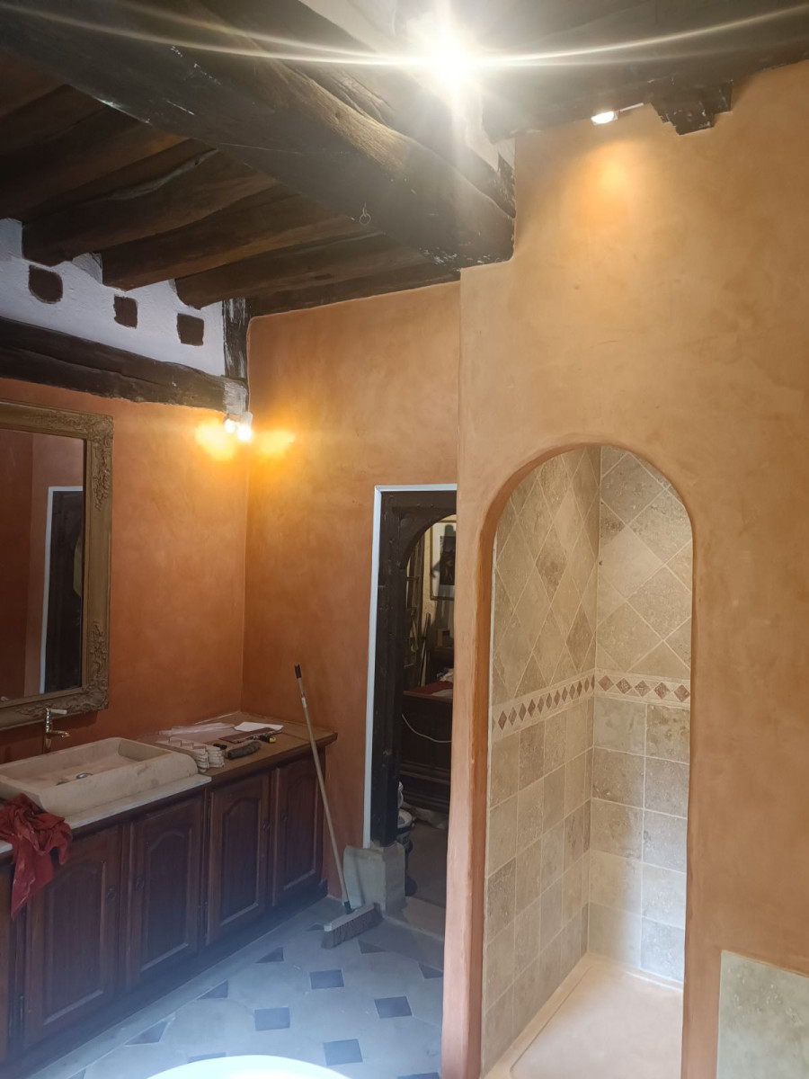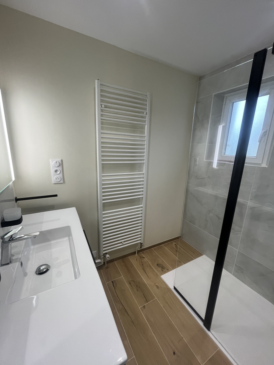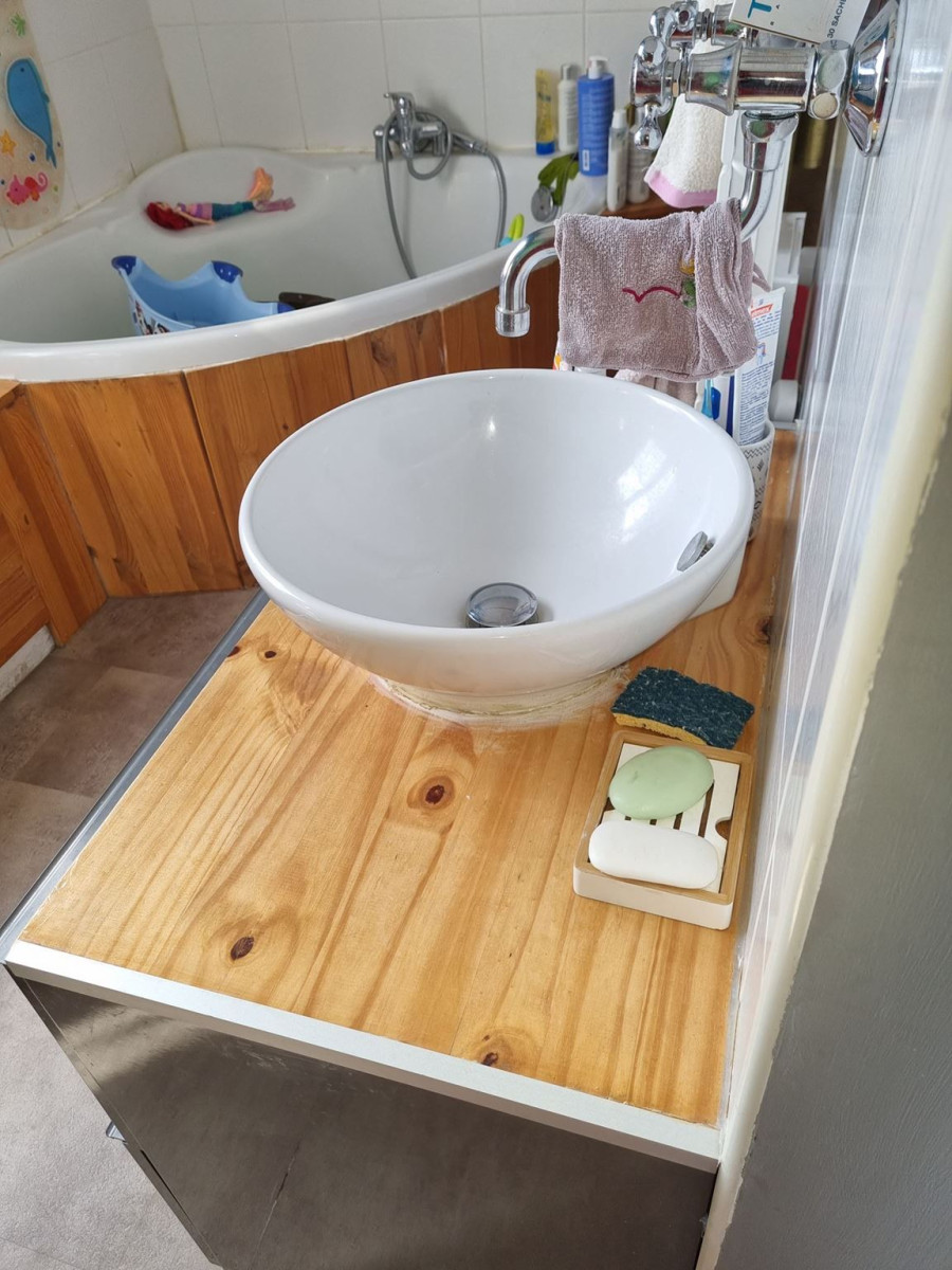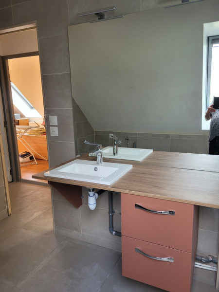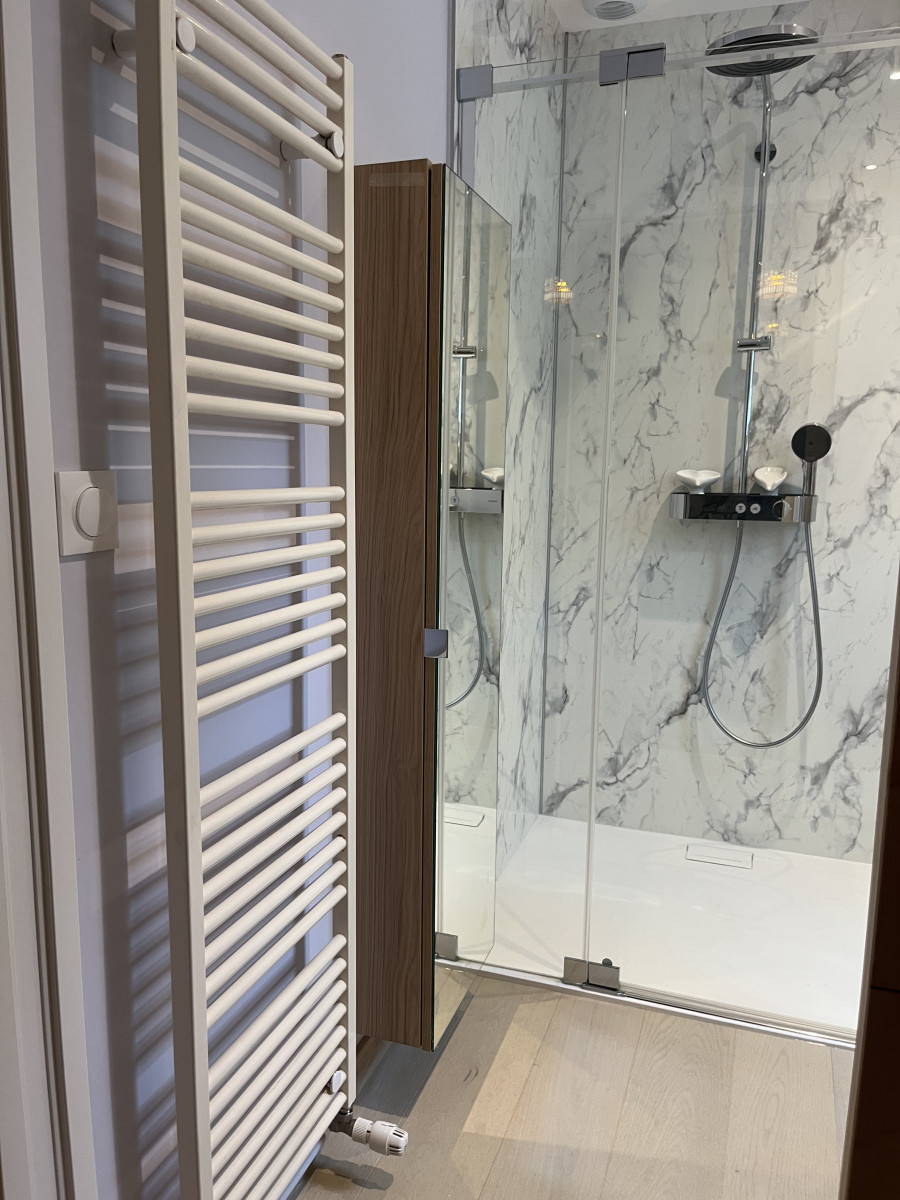 Réalisation d'une salle bain en panneaux Vipanel, faïences et peinture.